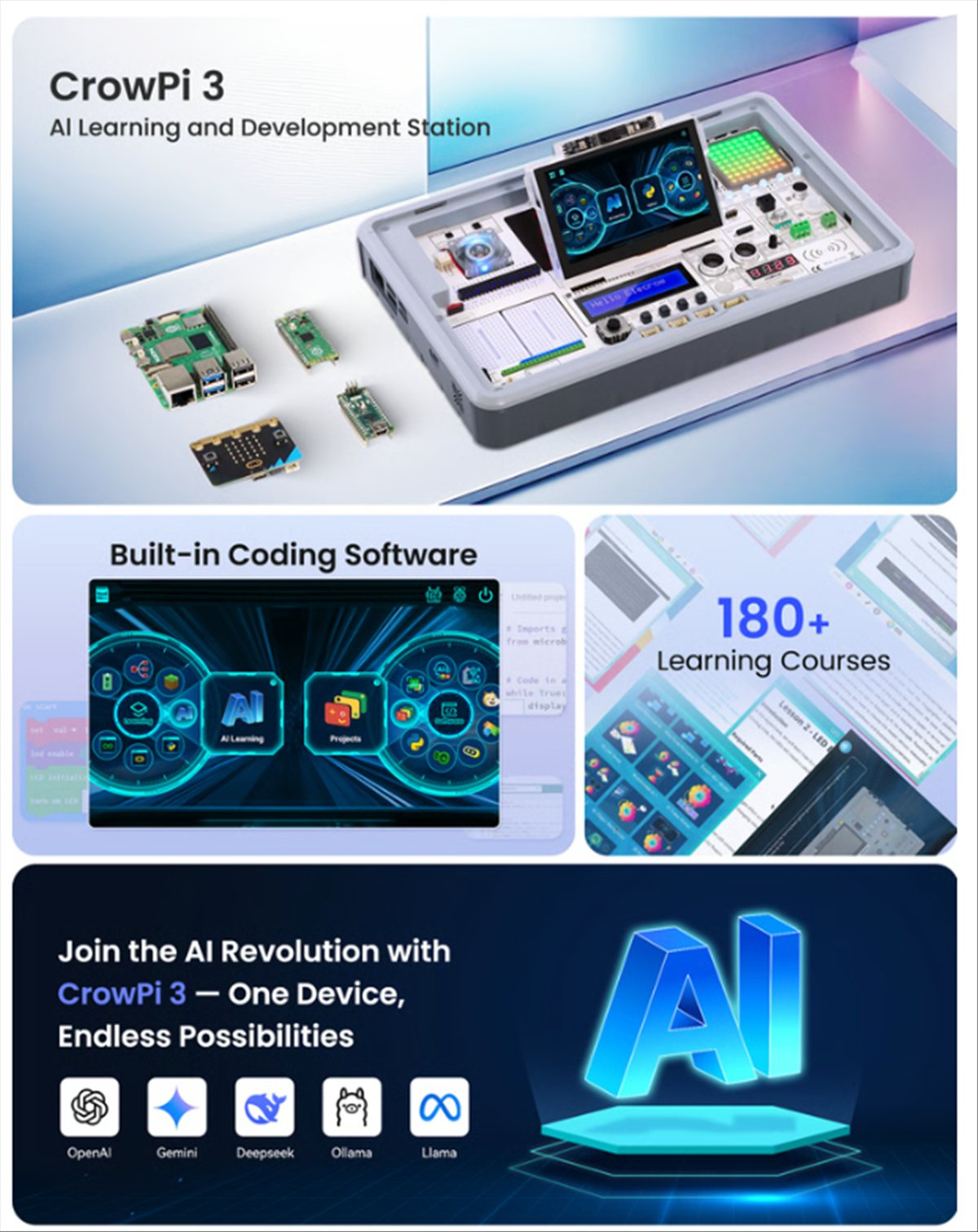 Y lo mejor: está diseñado para que tú crees tus propias historias tecnológicas. Porque sí, todos usamos IA, pero muy pocos la construyen. Con CrowPi 3, eso está a punto de cambiar.
