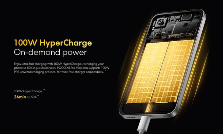 La carga HyperCharge de 100W permite recuperar el 50% de la batería en apenas 24 minutos. Una carga completa del 0 al 100% lleva algo más de 40 minutos, una velocidad impresionante para una batería tan grande. Además, soporta carga inversa de 27W, lo que convierte al móvil en un power bank de emergencia para cargar auriculares, smartwatches o incluso otro móvil.
